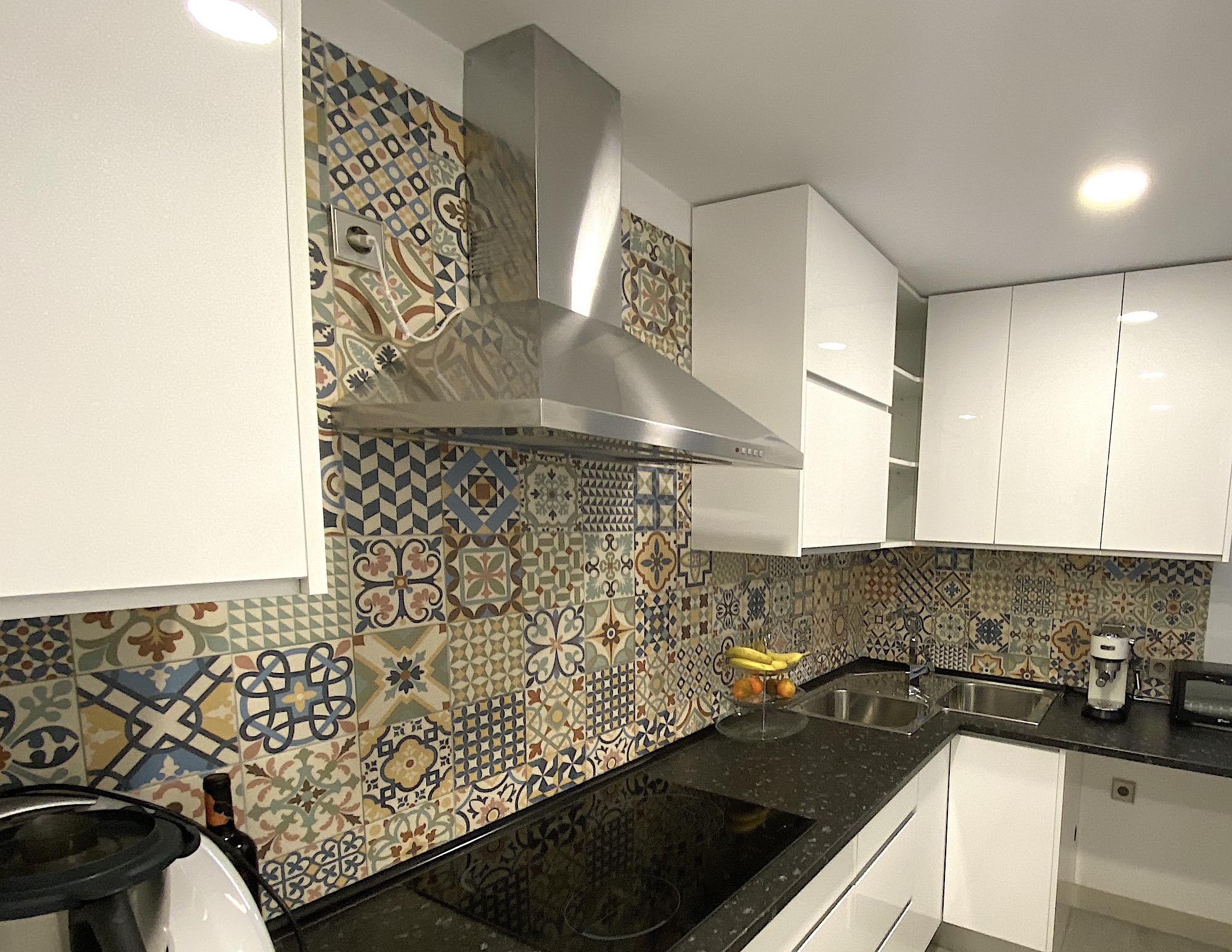 Refurbishment work in an apartment located in Marbella Centre. New water, drainage, and electricity facilities, new tiles on the floor and wall, LED lighting, and full equipped kitchen. Included kitchen design.